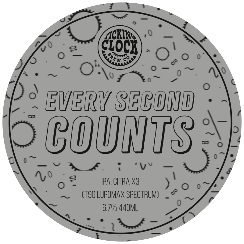 Guaranteed to keep the smile upon your face. Every Second Counts has Citra three ways, T90, LUPOMAX and Spectrum laid over a dry NEIPA extra pale base. That one old trusty hop but it never felt so new.